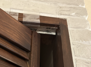 扉の柱が割れている箇所を接着し、破損したヒンジは新しいヒンジにつけ直し、上下のバラ